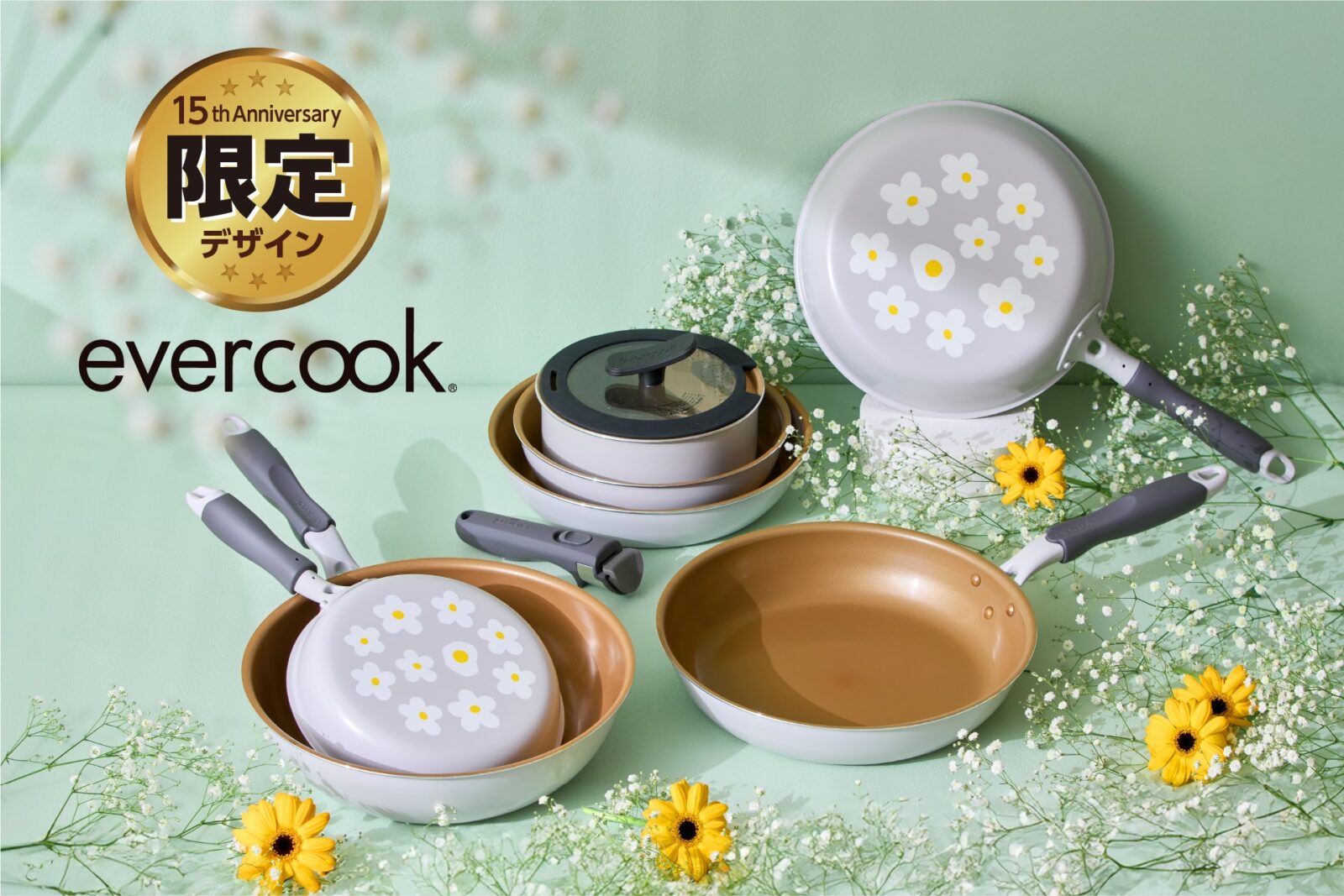 ツルすべの使い心地でリピーター多数の『evercook(エバークック)』より白いお花が描かれた15周年限定デザインを発売