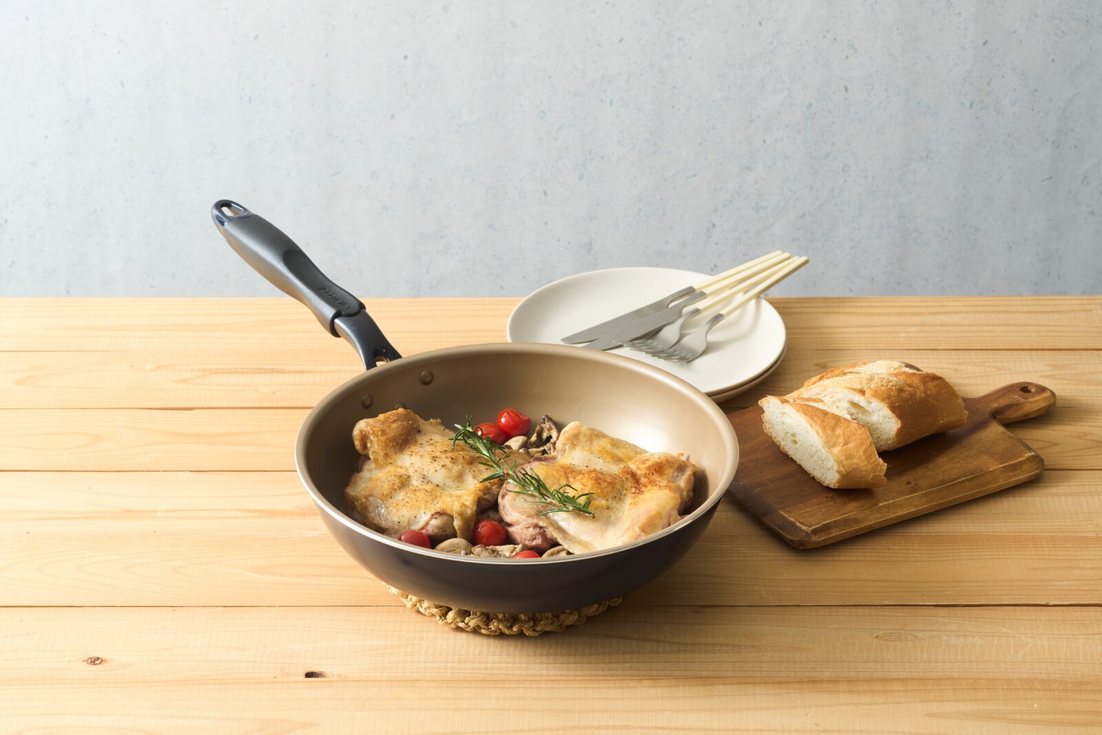 evercookは接着剤を使わずにふっ素樹脂コーティングをかける、バインダーフリー製法を採用しています。