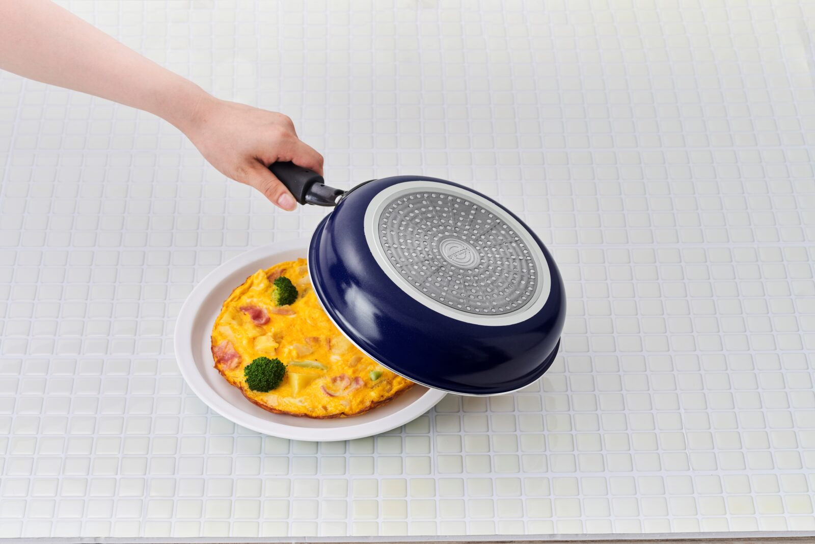 さらに、フライパン本体のアルミニウムとふっ素樹脂コーティングの間に、アルマイトコーティングを施しています。アルマイトコーティングとは酸化被膜のことで、塩分に強いという特徴があります。もし、ふっ素樹脂コーティングに傷がついてしまっても、このアルマイトコーティングのおかげでアルミニウムの腐食を防いでくれるため、こびりつきにくくツルすべが続きます。