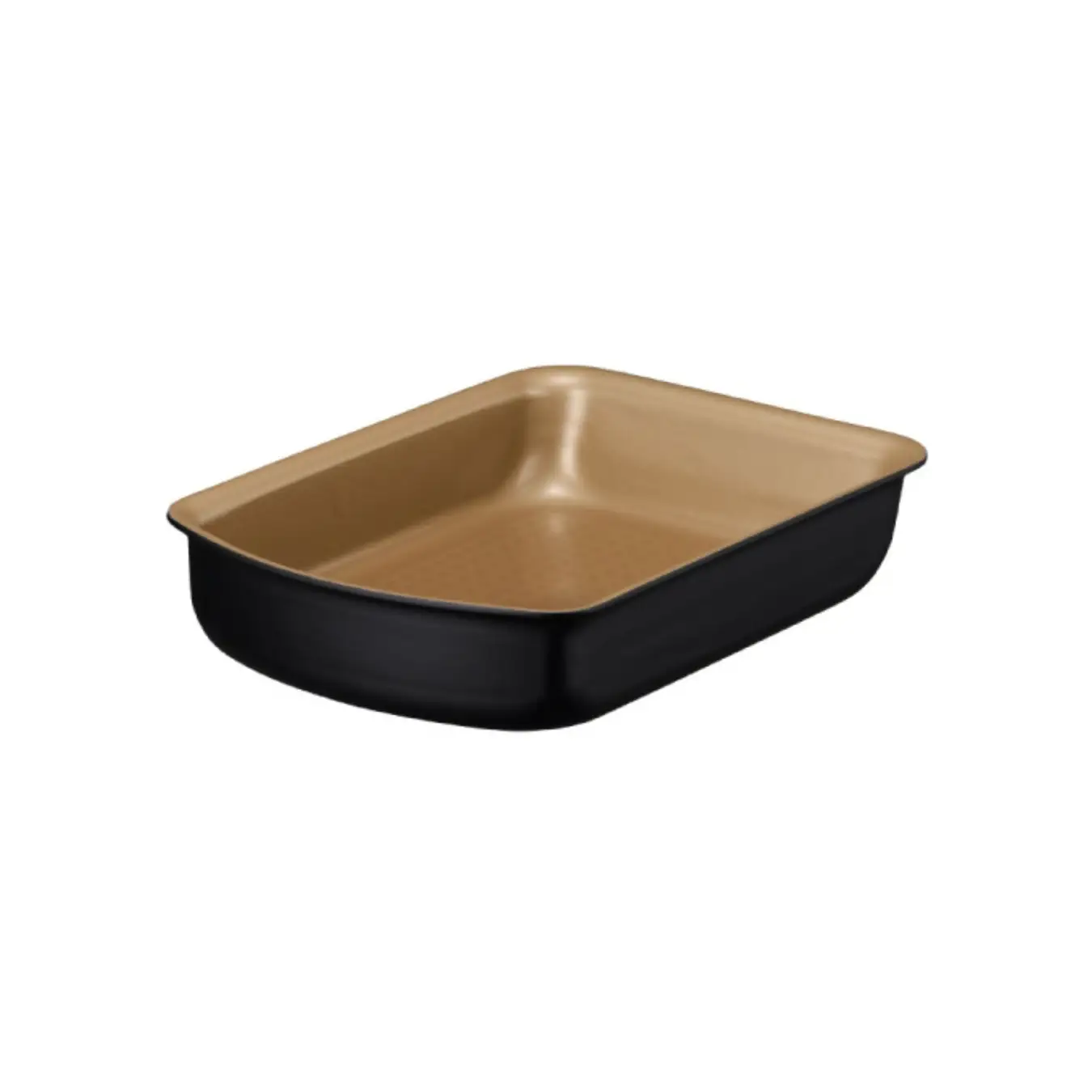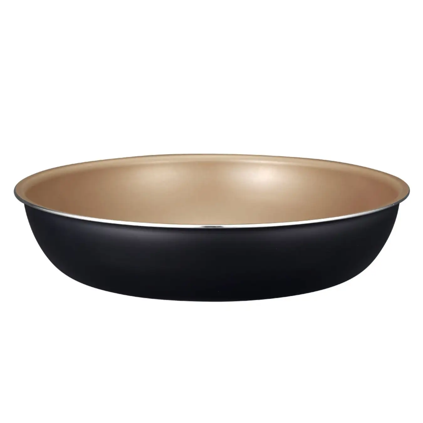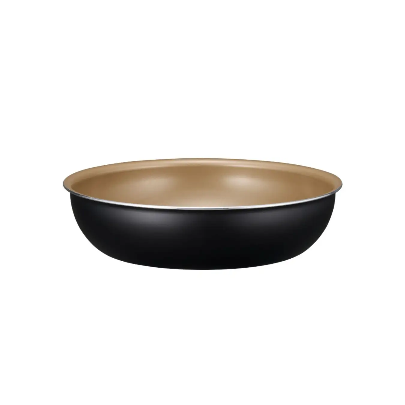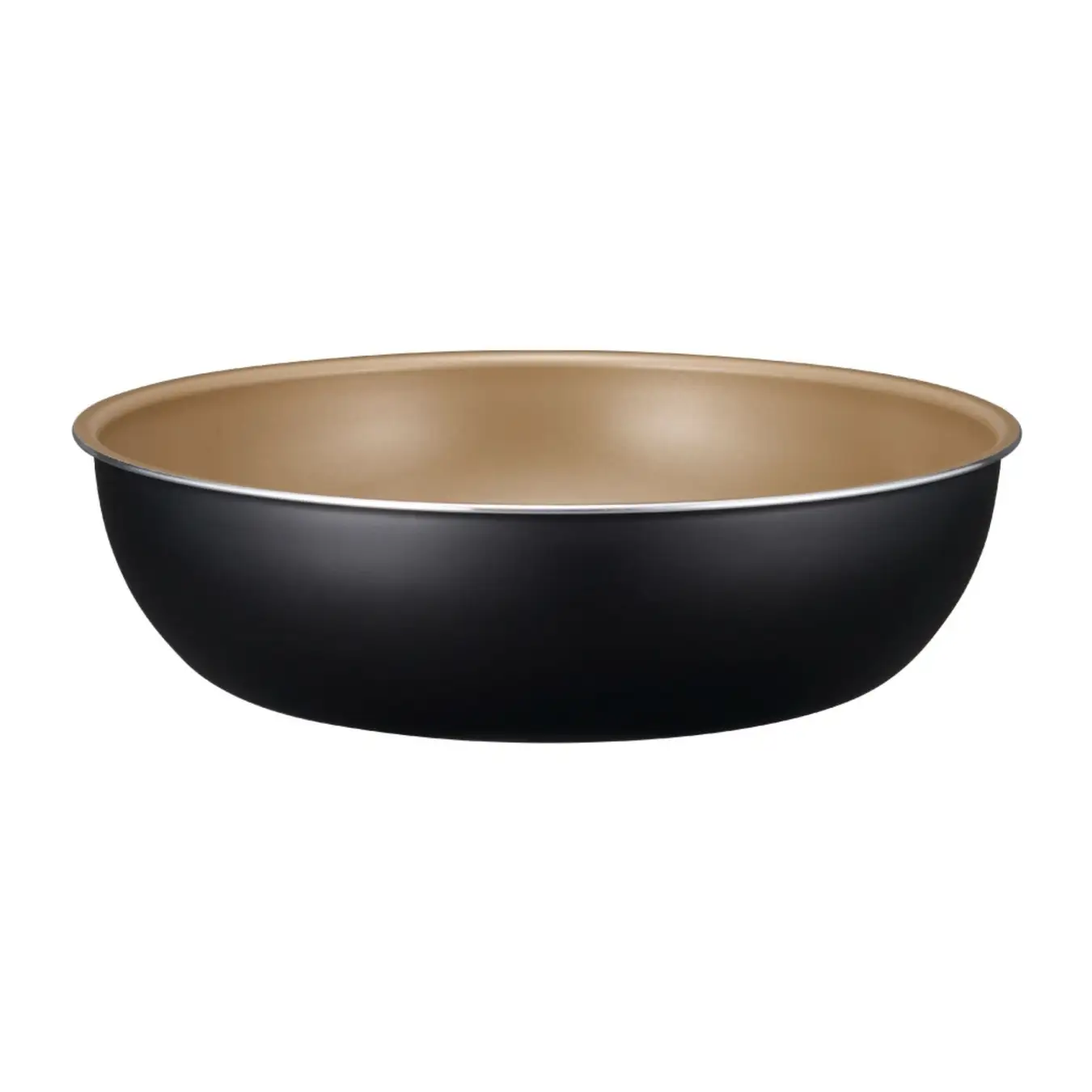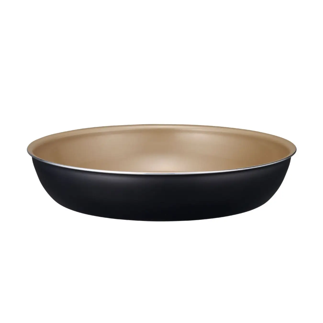 専用ハンドルを外せば、お皿のように使用できるので、できたての料理をそのまま食卓に出すことができます。マットなブラックカラーはどんな料理とも相性がよく、内面のシャンパンゴールドが食卓を明るく演出してくれます。